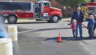 Open house fun Hazel Coughlan tests out the strength of a fire hose on some barrels at the Upper Sandusky Fire Department open house, while her father, USFD’s Brendan Coughlan, looks on. Read More