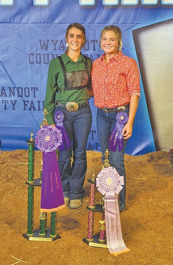Molly Brodman (left) and Riley Brodman were grand champion and runner-up in Saturday’s Showman of Showmen competition at the Wyandot County Fair. Daily Chief-Union/Brian Hemminger