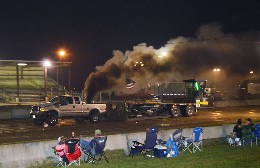 Jennifer Dixon competed Friday in the truck pull in front of the grandstands at the Wyandot County Fair. The action continues at 6:30 p.m. tonight with the tractor pull, one of the last tractor pull events of the 2018 season.