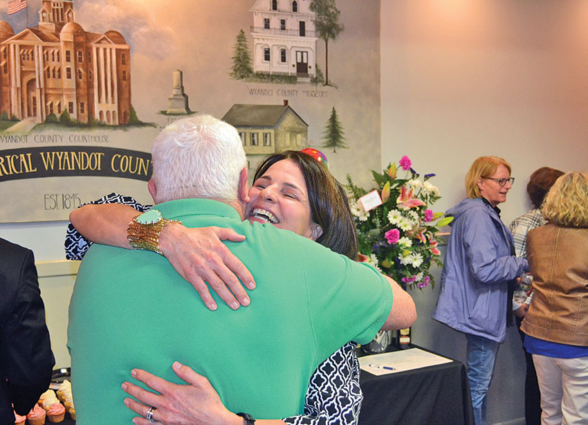 A new adventure Posted on April 13, 2019 0 Local residents visited the Wyandot Chamber of Commerce Friday for a going-away party for Chamber President Kathy Grasz, who announced this week that Friday would be her last day. Grasz accepted a position as marketing director for the North Central Electric Co-op. Pictured, Grasz gives a hug to Upper Sandusky City Councilman John Walker. Daily Chief-Union/Brian Hemminger