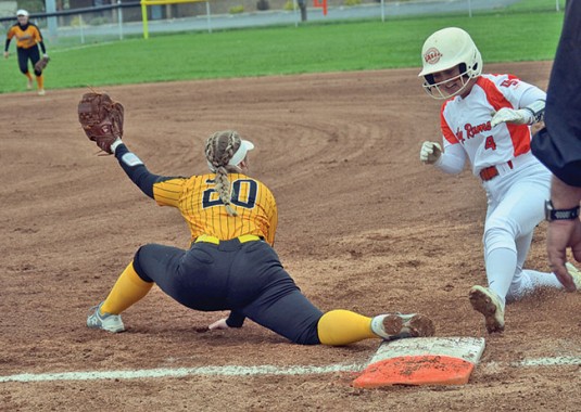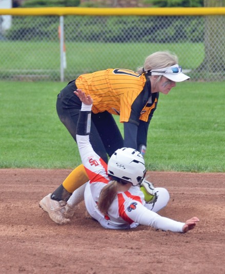 Almost perfect Rams top Eagles Posted on May 5, 2022 0 On target Upper Sandusky’s Liv Gier fires a pitch Wednesday against Colonel Crawford. Gier was outstanding, giving up just an unearned run while striking out 11 in the Rams’ 3-1 victory.Daily Chief-Union/Lonnie McMillan By LONNIE McMILLAN Sports editor Beating Colonel Crawford was going to taken Upper Sandusky’s best effort, and they got it Wednesday. A three-run fifth inning, combined with a shutdown pitching performance by Liv Gier, lifted the Rams past the Eagles 3-1 in Northern 10 Athletic Conference softball play at Upper Sandusky. Colonel Crawford (15-4, 10-2) dropped its second straight game, both by the same score, when it had a chance to lock up the league title. Instead, any of four teams, including the Rams, could grab at least a share. “Going into it, I thought we had to be near perfect to beat a quality team like that,” Upper Sandusky coach Luke Swavel said. “Liv was pretty darn close on that. Defense was good enough, made some mistakes, but the barrels, putting the ball in play against them, that was the difference there. That one inning we just seemed to barrel a lot of them up to be able to scratch some runs.” Back in a hurry Upper Sandusky’s Brooke Swavel (left) tries to get back to first base but is doubled off in the first inning Wednesday against Colonel Crawford. She made up for it with a two-run double in the Rams’ 3-1 victory.Daily Chief-Union/Lonnie McMillan Half of Upper Sandusky’s eight hits came in the fifth, and three of them were doubles, beginning with one by Logan Kennedy with one out. Hannah Plymale singled to put two runners on, and Brooke Swavel delivered a go-ahead two-run double on a line drive to left field. Alyse Swartz followed with a double of her own for insurance. “We got some girls on, and we got to the top of the lineup, and we were able to produce there,” coach Swavel said. “… With a good, quality pitcher like that, we need to be able to find ways like that to win, scratch some runs, because we’re not going to be able to score a lot of runs off her.” Those were the only runs the Rams (12-6, 7-3 N10) managed against Colonel Crawford’s Lauren Frietchen, but that was all they needed. Gier (8-5) allowed an unearned run in the first inning but nothing after that. She gave up just four hits with no walks and 11 strikeouts. “She did really well hitting her spots,” coach Swavel said. “We were working away and then every once in a while work in just to sneak it by and keep them honest, keep them on their toes. They had a lot of swings that were off-balance that kind of looked like us on Friday. We just kept them off balance. They have a pretty good hitting team, and if you can keep them somewhat guessing on what’s coming, you’ve already pretty much won the battle.” Caught stealing Upper Sandusky’s Hannah Plymale is tagged out trying to steal second Wednesday against Colonel Crawford. Plymale had a single in a big fifth inning in the Rams’ 3-1 win.Daily Chief-Union/Lonnie McMillan Colonel Crawford had very few chances. It stranded two in scoring position with two outs in the third and had a one-out single in the seventh. Allison Weithman had two of the team’s four hits. Plymale and Swartz both had two hits for Upper Sandusky. Frietchen (14-3) was the losing pitcher, giving up three earned runs on eight hits and one walk with nine strikeouts in six innings. One great performance will not be enough, though. The Rams will have to repeat it to finish off the week with games against Mohawk and then Colonel Crawford again. “We’ve got to do it again and again,” coach Swavel said. “This is good prep work for next week with the tournament. We’re going to see some quality pitching from here on out, so happy to really do better on hitting the ball square, especially with two outs.” The Rams play at 5 p.m. today in Sycamore. Score by innings Colonel Crawford 100 000 0 — 1 4 2 Upper Sandusky 000 030 x — 3 8 2 WP: Gier (8-5); LP: Frietchen (14-3). 2B: Swavel (US), Swartz (US), Fox (US), L. Kennedy (US).