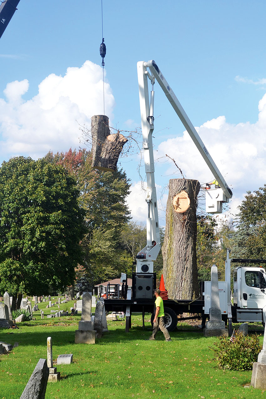 Ancient oak Posted on October 10, 2018 0 Daily Chief-Union/Brian Hemminger One of the oldest oak trees in Upper Sandusky, believed to be over 200 years old, was removed Tuesday by Oberlander’s Tree and Landscape Ltd. from Old Mission Cemetery. The tree was over 20 feet in diameter at the base and had to be removed one limb at a time via a crane for safety reasons.