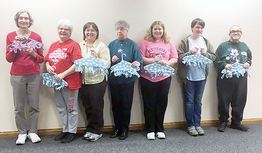 Finished products Posted on February 15, 2019 0 Submitted photo Participants show off their covered hangers from the “Hanging Out” session Thursday night at the Upper Sandusky Community Library that was hosted by instructors Barb Walton and Heidi McClane from Sew Nice. Participants used sewing machines to create their decorative hangers.