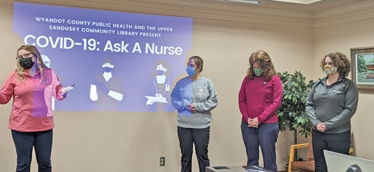 Health experts answer community’s COVID questions Posted on December 18, 2021 0 Here to help Wyandot County Public Helath, in coordination with the Upper Sandusky Community Library, hosted an “Ask a Nurse” event Wednesday, where health experts answered questions from the community about COVID-19, vaccines, boosters and more. Pictured (from left) are Health Educator Callan Pugh, Director of Nursing Jamie Crawford, public health and school nurse Beth Bower and epidemiologist Mary Salimbene Merriman.Daily Chief-Union/Brian Hemminger By BRIAN HEMMINGER City editor Area health experts were on hand Wednesday at the Upper Sandusky Community Library for an “Ask a Nurse” event to answer all questions concerning COVID-19, vaccines, boosters, variants and more. Attendees were educated on topics how MRNA vaccines work, the differences between isolation and quarantine, how the different types of tests for COVID-19 work and the seriousness of the pandemic. Public health nurse Beth Bower, who also works as a school nurse locally, said in 2020 when there was not a vaccine but students and teachers were taking more active measures to reduce infection like social distancing, mask wearing and some remote learning, there were 72 student infections and 70 staff infections in Wyandot County. This year, with less measures being taken to prevent infection, but with many teachers vaccinated, there have been 65 staff members infected, but 208 cases of COVID-19 among the student population. On the comparison between COVID-19 and the common flu, epidemiologist Mary Salimbene Merriman said from March of 2020 until Tuesday, there had been 275 hospitalizations from COVID-19 in Wyandot County. By comparison, over a 12-year period from 2009 until Tuesday, there had been 129 hospitalizations from the flu. “And we only had one flu hospitalization last year, because more people were wearing masks and protecting themselves,” Salimbene Merriman said. “COVID is way worse.” Salimbene Merriman and Wyandot County Director of Nursing Jamie Crawford made themselves available for questions any attendees had about COVID-19. Will there be a need for more boosters in the future? Crawford: Yes. I think it will end up being a situation like with the flu vaccine where they’ll alter the vaccine a little bit to try to help combat the most dominant variants that are coming out. We haven’t been told anything official about how this could happen every year. Salimbene Merriman: I would add that the likelihood of that happening would be greatly reduced if more people received the vaccination, and not just in the U.S., but across the world. In countries where they don’t have very high vaccination rates, that’s where you’re seeing those mutations happening faster, and then they’re introduced to the rest of the world. That’s how you get things like delta. The more people that are vaccinated, the less chance for mutation. Should you get vaccinated if you’ve already had COVID? Crawford: With getting COVID, people are going to build up natural immunity, which is wonderful, but there’s no information that states how long that natural immunity will last. There’s a thought that natural immunity will last for around three months or so, but there’s nothing stating it will last longer than that. If you get vaccinated, it will build up that immunity even more and it will last longer. There is a chance that if you haven’t had COVID before, you don’t know how it will affect you. Just waiting to get infected with the virus isn’t a good way to play it, because you could be that person that gets infected very badly, and having the vaccine gives your immune system instructions on what it needs to fight off when it comes into contact with the virus. That way even if you get sick, there’s a good chance you won’t get as sick as if you were unvaccinated. S.E.: I would add that with natural immunity, you only have natural immunity to the one virus, whereas with the vaccine, it’s going to cover a wider range of viruses. Natural immunity may not be as effective against those variants. Even if you have had COVID, you should still get the vaccine. Why should I get vaccinated if you can still get COVID even if you’ve had the vaccine? S.E.: Yes, we have seen breakthrough cases of people who have been vaccinated acquiring COVID. Those cases are significantly less severe than unvaccinated cases. They often have incredibly mild symptoms and the only reason they come in to get tested is they’ve had contact with somebody and they wanted to get tested to be on the safe side. I’ve seen people hospitalized for COVID for COVID pneumonia and on the verge of being intubated who were unvaccinated. I’m concerned about the long-term effects of the vaccine. Crawford: We know getting COVID has long-term effects. I know someone who was healthy with no other conditions before getting COVID, but after they had COVID and they had a pretty bad bout of it, they said their lungs were so severely scarred now, that just getting a cold or something like that could be really, really dangerous for them in the future. Just walking 10 feet from one place to another, they’re severely short of breath and have to kind of catch their breath before doing what they were doing, and they were very healthy prior to getting COVID. Are you just as likely to get hospitalized from getting vaccinated as from getting COVID? S.E.: There are some individuals within our population that will have an adverse reaction to the vaccine. We’ve seen it with the flu vaccine and there are some individuals who may have an adverse reaction to the COVID vaccine, but the chances of a severe reaction are incredibly small. To my knowledge, I cover five counties in Ohio and no one that I’m aware of has been hospitalized for an adverse reaction to the COVID vaccine. (Continued on page 2) Is it true the Pfizer vaccine was not actually FDA approved and a different medication 