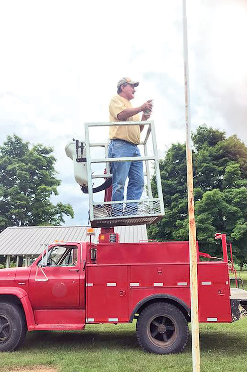 Restoring old glory Posted on August 8, 2018 0 Submitted photo Wyandot County Commissioner Ron Metzger used a bucket lift to paint the flagpole and rehang the American flag Tuesday at Crawford Park on Ohio 199. The pole had been in need of a fresh coat of paint.