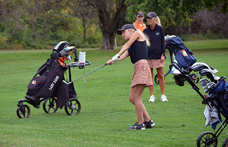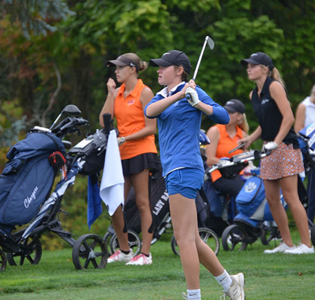 Royals win girls golf sectional title Posted on September 24, 2025 0 Daily Chief-Union/Lonnie McMillan Great season Upper Sandusky’s Addie Niederkohr follows her shot from the fairway as Wynford’s Rylee Robinson moves up for her shot Tuesday in the Division II sectional girls golf tournament at Valley View Golf Course. The Royals finished first and the Rams fourth. GALION — Wynford won its second sectional championship in school history to advance to district tournament play in the Division II tournament Tuesday at Valley View Golf Course. The Royals shot a 366 to top runner-up Edison by 16 strokes. Colonel Crawford earned the final of three team qualifying spots for district with a 398-403 advantage over fourth-place Upper Sandusky. Daily Chief-Union/Lonnie McMillan Sectional champs Wynford’s Caroline Sheldon tees off as Upper Sandusky’s Jillian Stansbery watches at Valley View Golf Course in sectional play Tuesday. Sheldon was third overall with a 77 to lead the Royals to first place. Caroline Sheldon led the Royals and ranked third in the tournament overall with a 77 that included a 37 on the back nine holes. Rylee Robinson also had a strong round of 86 that ranked fifth in the field. Willa Johnson shot 99, and Maggie Ridge finished at 104 for the Royals, while Megan Young’s 117 did not count toward the team total. Freshman Jillian Stansbery led the Rams with a 96 that tied for 10th place overall. She missed qualifying for districts as an individual by two strokes. Daily Chief-Union/Lonnie McMillan From the fairway Mohawk’s Adreama Moore takes a shot from the fairway Tuesday in Division II sectional girls golf play at Valley View Golf Course. Moore shot 157 for the Warriors, who were 13th as a team. Addison Niederkohr was two strokes back of Stansbery with a 98, while Avi Niederkohr shot 103. Cece Alspach rounded out the team total with a 106, while senior Alayna Huff ended her career by shooting 114. “This team made history, breaking school records, supporting each other every step of the way, and proving what it means to put the team first,” Upper Sandusky coach Mindy Newell said. “We will be back even stronger next year.” Mohawk finished in 13th place with a 525 and was led by Grace Carper’s 114. Annie Crum finished at 126, with Ava Downing two strokes behind her at 128. Adreama Moore’s 157 rounded out the lineup. “All around, Mohawk girls golf has made strides this year, and we are proud of our girls,” Mohawk coach Brandi Carper said. “We’ve met our team goals by having enough girls to score as a team, and made individual improvements that led to all three girls meeting their personal goals for the season. We look forward to our team members returning and picking up where we left off this season.” Mansfield St. Peter’s Chaeyeon “Joy” Kim was the tournament medalist with a 72, finishing four strokes ahead of Edison’s Annabelle Seville. Kim earned the first of three individual district qualifying spots from players not on qualifying teams, with the second going to Huron’s Ashtyn Spooner. Her 78 ranked fourth overall in the field. The final individual district qualifier was New London’s Olivia Yetter with a 94. Daily Chief-Union/Lonnie McMillan Final round Upper Sandusky’s Alayna Huff chips onto the green in front of coach Mindy Newell in the sectional tournament Tuesday at Valley View Golf Course. Huff shot 114 in her final round for the Rams. The Division II district tournament is 9 a.m. Monday at Sycamore Springs Golf Course just north of Arlington. Team results 1. Wynford 366*, 2. Edison 382*, 3. Colonel Crawford 398*, 4. Upper Sandusky 403, 5. Seneca East 415, 6. Clear fork 422, 7. Huron 426, 8. Ashland Crestview 436, 9. Willard 437, 10. Buckeye Central 460, 11. Ridgemont 466, 12. Norwalk St. Paul 468, 13. Mohawk 525, 14. Galion 611. * indicates district qualifiers. Individual results Wynford: Sheldon 40-37—77, Robinson 45-41—86, Johnson 51-48—99, Ridge 58-46—104, Young 63-54—117. Upper Sandusky: Stansbery 50-46—96, Ad. Niederkohr 48-50—98, Avi Niederkohr 50-53—103, Huff 57-57—114, Alspach 56-50—106. Mohawk: Crum 67-59—126, Carper 61-53—114, Downing 62-66—128, Moore 75-82—157. Medalist: Kim (Mansfield St. Peter’s) 38-34—72. Individual district qualifiers: Kim (Mansfield St. Peter’s) 38-34—72, Spooner (Huron) 45-33—78, Yetter (New London) 44-50—94.