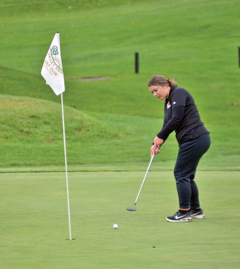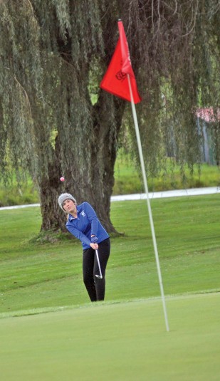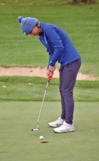 Royals win sectional championship Posted on September 28, 2022 0 Upper’s Gier also advances to district play Sectional champ Wynford’s Jordyn Alspach makes a short putt during Division II sectional play Tuesday at Valley View golf Course. She medaled with an 82 to lead the Royals to the sectional team title.Daily Chief-Union/Lonnie McMillan GALION — Jordyn Alspach was the tournament medalist to lead Wynford to the team championship in Division II girls golf sectional action at Valley View Golf Course. The Royals finished with a 395 to top runner-up Colonel Crawford, with a 399, by four strokes. Both advance to district play, along with third-place Edison, which shot a 403. Huron was a distant fourth at 433. Led by individual district qualifier Liv Gier, Upper Sandusky finished at 462. The Eagles defeated the Royals by 11 and 27 strokes in two nine-hole matchups during the regular season and then by 65 strokes in the 18-hole Northern 10 Athletic Conference tournament, but this time was very different. Alspach led the way by shooting a 43 on the front nine and then a 39 on the back nine to finish with an 82 despite cool, soggy conditions. She finished one stroke better than medalist runner-up Sarah Hoak of Plymouth with an 83. Colonel Crawford’s Lucy Myers was third with an 85. Wynford had consistent scores after that, starting with Melanie Johnson’s 100 that tied for ninth overall. Kyliana Bennett shot a 105, and Rylee Robinson contributed a 108. Emi Schuster’s 177 was dropped. Final round Upper Sandusky senior Ellie Dible takes her tee shot on the par-3 No. 9 on Tuesday at Valley View Golf Course as she is watched by Wynford’s Melanie Johnson (right). The Rams played through poor weather and finished seventh in the sectional tournament.Daily Chief-Union/Lonnie McMillan For Upper Sandusky, Gier had a 42 on the front nine and then had a tougher time on the back with a 47 to finish with an 89 that still stood as the fourth best score on the day among 68 players. Eden Morris capped off her career with a 116, while Alayna Huff shot a 125. Both Ellie Dible and Kendall Van Horn had 132s. Good round Wynford’s Melanie Johnson pops up a chip shot toward the hole Tuesday at Valley View Golf Course. Johnson’s round of 100 ranked ninth during tough conditions in Division II sectional tournament action.Daily Chief-Union/Lonnie McMillan “I’m proud of this team for keeping a positive attitude while playing through brutal conditions,” Upper Sandusky coach Mindy Newell said. “It’s not easy to play in pouring rain with cold temperatures.” The tournament was delayed for one hour during some of the worst of the rain with still four holes to be played. Hoak and Gier took the first two individual district qualifying spots with ease. The third one went to Galion’s Julia Conner with a 100. Huron’s Malena Fantozzi matched her score but was not present at the end of the tournament and forfeited a playoff opportunity for the final place in the district tournament. Colonel Crawford’s Sophie Beck finished with a 91 that ranked fifth on the day, but the Eagles’ next two scores of 107 and 116 were outdone by the Royals. The Division II girls golf district tournament is 9 a.m. Monday at Sycamore Springs Golf Course. Putt lined up Upper Sandusky’s Kendall Van Horn lines up a putt on No. 8 on Tuesday at Valley View Golf Course. The Rams finished seventh in the sectional tournament.Daily Chief-Union/Lonnie McMillan Team results 1. Wynford 395*, 2. Colonel Crawford 399*, 3. Edison 403*, 4. Huron 433, 5. Vermilion 453, 6. Buckeye Central 456, 7. Upper Sandusky 462, 8. Norwalk St. Paul 466, 9. Clear Fork 480, 10. Galion 491, 11. Ashland Crestview 528, 12. Willard 532. * indicates district qualifier. Individual results Wynford: Alspach 43-39—82, Bennett 55-50—105, Johnson 48-52—100, Robinson 54-54—108, Schuster 92—85—177. Upper Sandusky: Gier 42-47—89, Morris 62-54—116, Dible 64-68—132, Van Horn 66-66—132, Huff 61-64—125. Medalist: Alspach (Wynford) 43-39—82. Individual district qualifiers: Hoak (Plymouth) 42-41—83, Gier (Upper Sandusky) 42-47—89, Conner (Galion) 52-48—100. Team results Wynford 395, 2. Colonel Crawford 399, 3. Edison 403*, 4. Huron 433, 5. Vermilion 453, 6. Buckeye Central 456, 7. Upper Sandusky 462, 8. Norwalk St. Paul 466, 9. Clear Fork 480, 10. Galion 491, 11. Ashland Crestview 528, 12. Willard 532. indicates district qualifier. Individual results Wynford: Alspach 43-39—82, Bennett 55-50—105, Johnson 48-52—100, Robinson 54-54—108, Schuster 92—85—177. Upper Sandusky: Gier 42-47—89, Morris 62-54—116, Dible 64-68—132, Van Horn 66-66—132, Huff 61-64—125. Medalist: Alspach (Wynford) 43-39—82. Individual district qualifiers: Hoak (Plymouth) 42-41—83, Gier (Upper Sandusky) 42-47—89, Conner (Galion) 52-48—100.