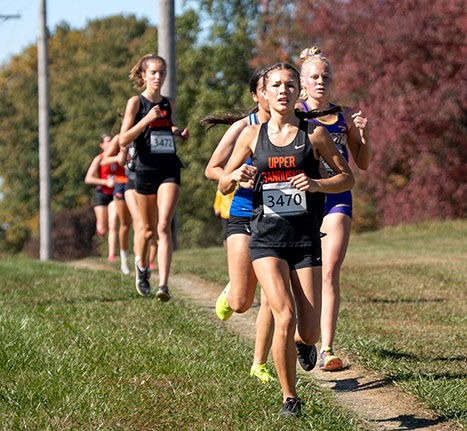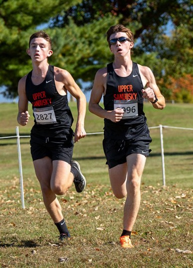 Upper girls, Baldwin advance to regionals Posted on October 21, 2024 0 Daily Chief-Union/Lonnie McMillan Regional qualifiers Upper Sandusky’s Jocelyn Leightey (3470) runs just slightly ahead of teammate Shiloh Shasteen on Saturday in the Division II race of the regional meet at Amann Park in Galion. The Rams were third as a team to qualify for regionals. GALION — Upper Sandusky’s girls team and Abe Baldwin qualified for regionals in the district cross country meet Saturday at Amann Park. The Rams girls finished third with 83 points, only 10 behind runner-up Shelby. Lexington won with 54 points. Bellevue was the final of four team qualifiers with 122 points. Three Upper Sandusky girls finished well enough to qualify individually if they had not advanced with their team. Hope Morris took fifth place in 19:58.70, Jocelyn Leightey finished 12th in 20;42.54, and Shiloh Shasteen was 15th in 20:57.14. Rounding out the team score were Abbi Ault in 28th place in 22:28.88 and Macie Clark in 30th place in 22:40.37. Port Clinton’s Morgan Wiechman was the winner in 18:55.52. Daily Chief-Union/Lonnie McMillan Working together Upper Sandusky’s Andrew Leightey (left) and Jameson Reile run Saturday in the district meet in Galion. Leightey and Reile finished 30th and 31st as the Rams were fifth. Upper Sandusky’s boys missed advancing as a team by one place, finishing fifth with 128 points. Bellevue took the final spot with 116 points. Lexington dominated with all five of its scoring runners in the top seven for just 19 points, while Ontario was second with 88 points and Edison third with 107 points. Baldwin cracked the top 16 to qualify for regionals by taking 14th place in 17:11.91. The team’s next four runners were within six places of one another. Henry Minehart finished 26th in 17:52.12, one spot in front of Franklin Arnold, who finished in 17:52.65. Andrew Leightey was 30th in 18:00.87, and Jameson Reile finished 31st in 18:03.50. Lexington’s Latrell Hughes was the winner in 15:33.96. In Division III, with 20 individuals and five teams advancing, Wynford’s Briana Westrick was 30th in 22:19.79, while Allie Bessinger took 33rd place in 22:31.13. Kolbie Allgyre finished 74th in 27:28.13. Danbury’s Emma Redett was the individual winner in 19:08.69. Huron was the Division III girls champion with a 40-71 margin over Ashland Crestview. Norwalk St. Paul edged Edison for third 131-135, and Mansfield Christian took fifth place with 153 points. Daily Chief-Union/Lonnie McMillan Good career Wynford’s Briana Westrick runs Saturday in the district meet at Amann Park. Westrick was 30th in 22:19.79 in her final race. Wynford’s boys were 12th in the team standings with 296 points. Colonel Crawford won the championship 46-64 over Huron, with Bucyrus (88 points), New London (97) and Ashland Crestview (117) also advancing to regionals. Brennen Westrick paced the Royals with a 49th-place finish in 19:47.63. Seth Pope (20:52.14) and Drew Pope (21:41.79) were 60th and 69th, respectively. Clay Lusk took 74th place in 21:57.51, and Ashton Tarbert was 76th in 22:26.52. Huron’s Sage Edgerly-Bork won the Division III boys race in 16:02.39. The regional cross country meet starts at 10 a.m. Saturday, with the Division II boys and girls races set for 12 and 12:45 p.m. at Hedges Boyer Park in Tiffin. Division II girls Team results 1. Lexington 54, 2. Shelby 73, 3. Upper Sandusky 83, 4. Bellevue 122, 5. Ontario 137, 6. Galion 153, 7. Perkins 158, 8. Clyde 191, 9. Willard 227. Individual results Upper Sandusky: 5. Morris 19:58.70, 12. Leightey 20:42.54, 15. Shasteen 20:57.14, 28. Ault 22:28.88, 30. Clark 22:40.37, 45. Wengerd 24:00.17, 57. Cundiff 25:58.13. Winner: Wiechman (Port Clinton) 18:55.52. Division III girls Team results 1. Huron 40, 2. Ashland Crestview 71, 3. Norwalk St. Paul 131, 4. Edison 135, 5. Mansfield Christian 153, 6. New London 156, 7. Buckeye Central 159, 8. Crestline 183, 9. Western Reserve 201, 10. Colonel Crawford 239, 11. Plymouth 243. Individual results Wynford: 30. Westrick 22:19.79, 33. Bessinger 22:31.13, 74. Allgyre 27:28.13. Winner: Redett (Danbury) 19:08.69. Division II boys Team results 1. Lexington 19, 2. Ontario 88, 3. Edison 107, 4. Bellevue 116, 5. Upper Sandusky 128, 6. Perkins 128, 7. Vermilion 164, 8. Clyde 257, 9. Shelby 266, 10. Galion 273, 11. Port Clinton 289, 12. Willard 337. Individual results Upper Sandusky: 14. Baldwin 17:11.91, 26. Minehart 17:52.12, 27. Arnold 17:52.65, 30. Leightey 18:00.87, 31. Reile 18:03.50, 38. Pohlman 18:32.91, 50. Miller 19:13.35. Winner: Hughes (Lexington) 15:33.96. Division III boys Team results 1. Colonel Crawford 46, 2. Huron 64, 3. Bucyrus 88, 4. New London 97, 5. Ashland Crestview 117, 6. Mansfield Christian 157, 7. Norwalk St. Paul 193, 8. Buckeye Central 216, 9. Western Reserve 227, 10. Plymouth 248, 11. Danbury 263, 12. Wynford 296. Individual results Wynford: 49. Westrick 19:47.63, 60. S. Pope 20:52.14, 69. D. Pope 21:41.79, 74. Lusk 21:57.51, 76. Tarbert 22:26.52, 79. Porter 22:54.00, 88. Assenheimer 26:07.83. Winner: Edgerly-Bork (Huron) 16:02.39.