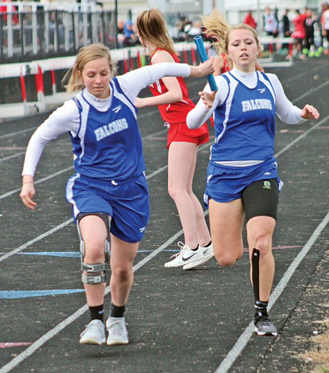 2nd exchangeRiverdale’s Carrigan Vent gets the baton from Danielle Searfoss in 6400 relay on Friday in the Kenton Relays.