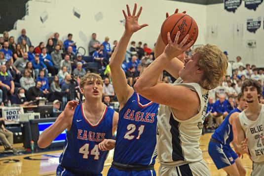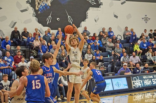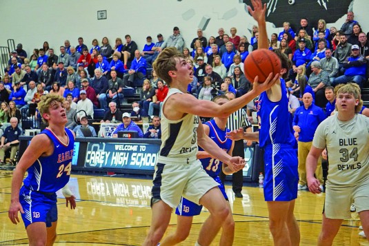 Beat-up Blue Devils can’t keep up with Eagles this time Posted on February 28, 2024 0 To the rim Carey’s Dominic Yeater flies to the rim for a layup Tuesday against Liberty-Benton. A senior, Yeater scored six points in his final high school basketball game in Carey’s 59-37 loss to the Eagles.Daily Chief-Union/Brian Hemminger By BRIAN HEMMINGERCity editor CAREY — Carey’s boys basketball team has overcome adversity all season. Despite losing senior Nic Putnam to a knee injury before the season even started, the Blue Devils managed to split the Northern 10 Athletic Conference championship. But injuries and illness were too much for Carey to overcome Tuesday in a 59-37 loss to Liberty-Benton in a Division III sectional semifinal matchup at Carey. “I feel for Carey,” Liberty-Benton coach Doug Whiteman said. “I think coach (Jamie) Young does a great job. His son Brayden got a raw deal with his foot. They had all kinds of injuries. I really feel for those kids at Carey because they’re tough kids.” Scoop shot Carey’s Carter Smiley (3) attempts to scoop a layup around a Liberty-Benton defender Tuesday. Smiley scored all six of his points from the free-throw line in Carey’s 59-37 defeat.Daily Chief-Union/Brian Hemminger On top of Putnam, Carey (14-9) lost slashing forward Austin Niederkohr to an injury in the final game of the regular season Friday against Upper Sandusky. Top post player Butch Brodman had seven points in the first half Tuesday but was unable to play in the second half after sustaining an ankle injury. Starting guard Kyler Boes was battling an illness and while Brayden Young was able to return to the floor from a broken foot, he still wasn’t back to 100% for the tournament. “We weren’t the team we started the season with,” coach Young said. “It sucks for those guys, especially the seniors. I hurt for them because I wish we could have done better today. It’s just the journey we went through this year with all the adversity. We overcame it for the most part. Just today, they were on it and we had some struggles.” Liberty-Benton jumped out to an early lead against Carey in the first quarter, forcing Young to call a timeout with his team trailing 12-3. “We didn’t get off to a good start,” coach Young said. “They got out on us and we didn’t have the sense of urgency to get back. Usually our 1 and 2 get back the second a shot goes up, but we were late to the show to do that, which led to a lot of easy buckets.” Open look Carey’s Kyler Boes (5) puts up a jump shot Tuesday against Liberty-Benton. Boes will be the only regular varsity player returning after eight seniors will graduate this season.Daily Chief-Union/Brian Hemminger Liberty-Benton led 14-3 at the end of the first quarter, but Carey got back into the game by being more aggressive on offense in the second quarter, forcing eight fouls from the Eagles and making 10 of 11 free throws in the quarter. “We came back the way we do and made a run at it,” coach Young said. “We did what we were supposed to do with getting the ball inside. That’s what our game plan was. It worked.” Carey got as close as six points, trailing 25-19, but a 5-0 run from Liberty-Benton put the Eagles up 11 before Carey’s Dominic Yeater made an alley-oop putback at the halftime buzzer to make it 30-21 at the break. Normally one of the most composed offenses in the area, Carey was harassed on the perimeter by an aggressive Liberty-Benton man-to-man defense, which forced several uncharacteristic turnovers. The Blue Devils committed 15 turnovers overall in the game. “We hang our hat on our defense,” Whiteman said. “That’s our bread and butter. Our guys pride themselves on that. We were able to get out in some passing lanes and really shrink the driving lanes. Our guys played with tremendous energy.” Trailing by nine at the half, Carey needed to start the third quarter strong, but the opposite happened. Liberty-Benton scored nine points on its first four possessions, including a thunderous dunk from Carson Conaway after he beat a defender on a cut through the middle of the lane, forcing a Carey timeout. The Blue Devils were unable to stop the bleeding, eventually getting outscored 19-2 in the third quarter as Liberty-Benton extended its lead to 49-24 by the end of the frame. “It kind of snowballed there in the third quarter,” coach Young said. “They made shots and we didn’t. In that third quarter, we only scored two points and in the first quarter, we only scored (three).” Varsity opportunity Carey’s Eli Steen attempts a shot in the post Tuesday against Liberty-Benton. Steen scored two points after getting in late in the game against the Eagles. Daily Chief-Union/Brian Hemminger Liberty-Benton finished the game shooting 24 of 42 (57.1%) from the field while Carey shot just 10 of 37 (27%) from the field. The Blue Devils did not make a 3-pointer in the game. “(Carey has) such special shooters that any mistake we’ve made against them, they always made us pay,” Whiteman said. “Our game plan was to get out on them and take away the 3 and our guys did a great job executing that.” Liberty-Benton was paced by Jake Gerken, who scored 23 points. Conaway added 19 for the Eagles while Zach Elchert had 11 points despite also playing through an injury. “Zach Elchert is an absolute monster,” Whiteman said. “He’s playing with a broken thumb and he still seems to get a hand on every loose ball. I thought that was one of his best games of the year.” Carey was led by eight points from Mitch Boes. Brodman had seven points and Carter Smiley, Alex Putnam and Yeater had six points each. With the loss, Carey says goodbye to a heavy senior class that includes Smiley, Alex Putnam, Nic Putnam, Brodman, Niederkohr, Yeater, Brayden Young and Mitch Boes. “This senior class was amazing to work with,” coach Young said. “I looked forward to this year for so long. These kids just fought an